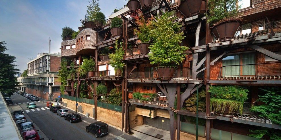 Il Bosco Verticale è un modello di edificio residenziale sostenibile, un progetto di riforestazione metropolitana che contribuisce alla rigenerazione dell’ambiente e alla biodiversità urbana senza espandere la città sul territorio. Si tratta di un modello di densificazione verticale della natura all’interno della città, che opera in relazione alle politiche di rimboschimento e naturalizzazione dei grandi confini urbani e metropolitani. Il primo esempio di Bosco Verticale, composto da due torri residenziali di 110 e 76 m di altezza, è stato realizzato nel centro di Milano, ai confini del quartiere Isola, e ospita 800 alberi (ognuno di questi di 3, 6 o 9 metri), 4.500 arbusti e 15.000 piante e una vasta gamma di arbusti e piante floreali, distribuiti in relazione alla posizione delle facciate verso il sole. In ogni Bosco Verticale è presente una quantità di alberi che occuperebbe una superficie di 20.000 mq. Il sistema vegetale del Bosco Verticale aiuta nella creazione di uno speciale microclima, produce umidità e ossigeno, assorbe particelle di CO2 e polveri sottili.